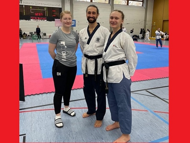 und musste sie wegen eines kleinen Fehlers wiederholen. Die Trainer Stojan Babic und Matthias Walter haben sie kurz zur Seite genommen und die Nerven wieder etwas beruhigt. Beim zweiten Versuch hat die Poomsae dann gut geklappt, wie auch